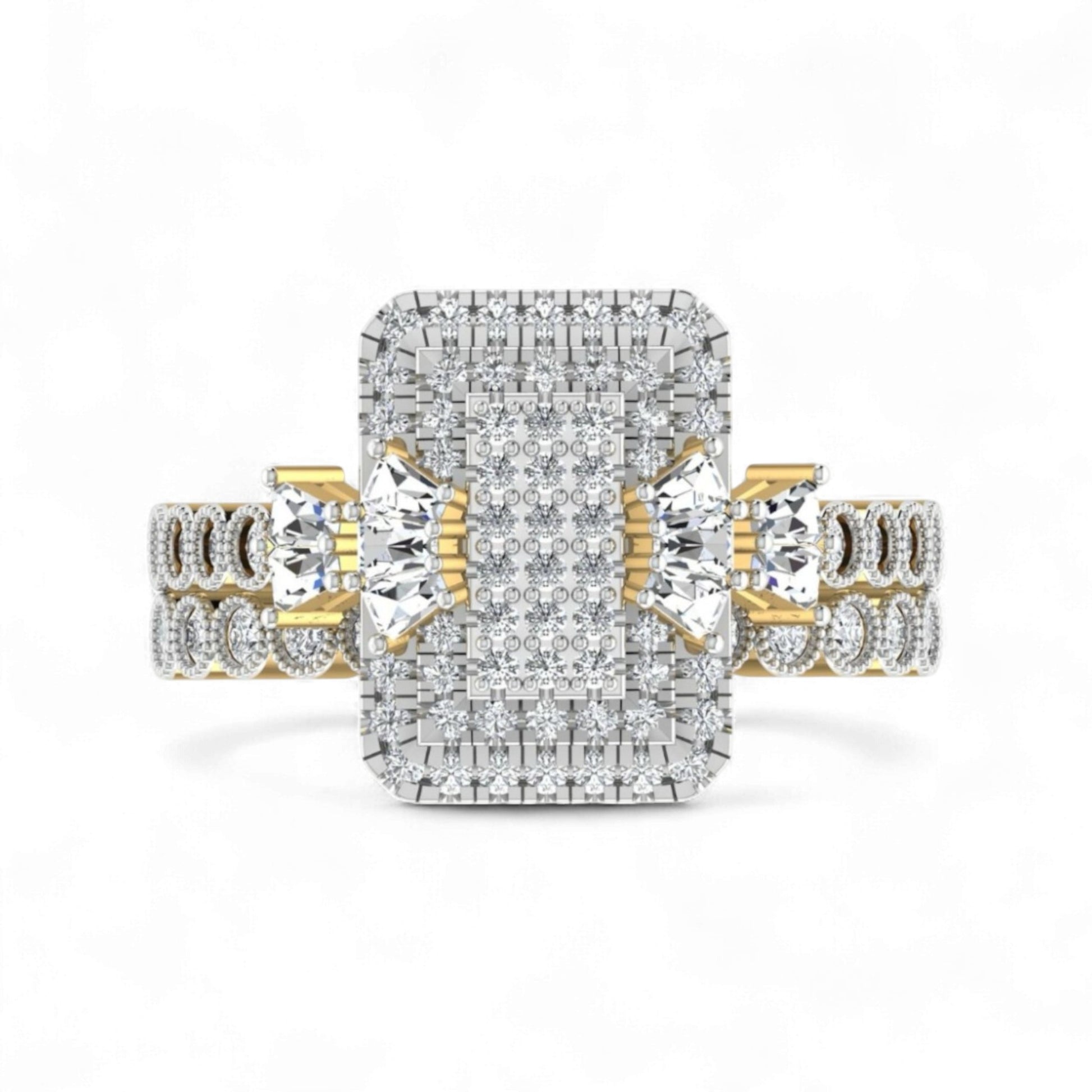 Home Collections Bridal Wedding Set Lucy Radiant Cut Natural Diamond Cluster Bride Set in 18KT Gold