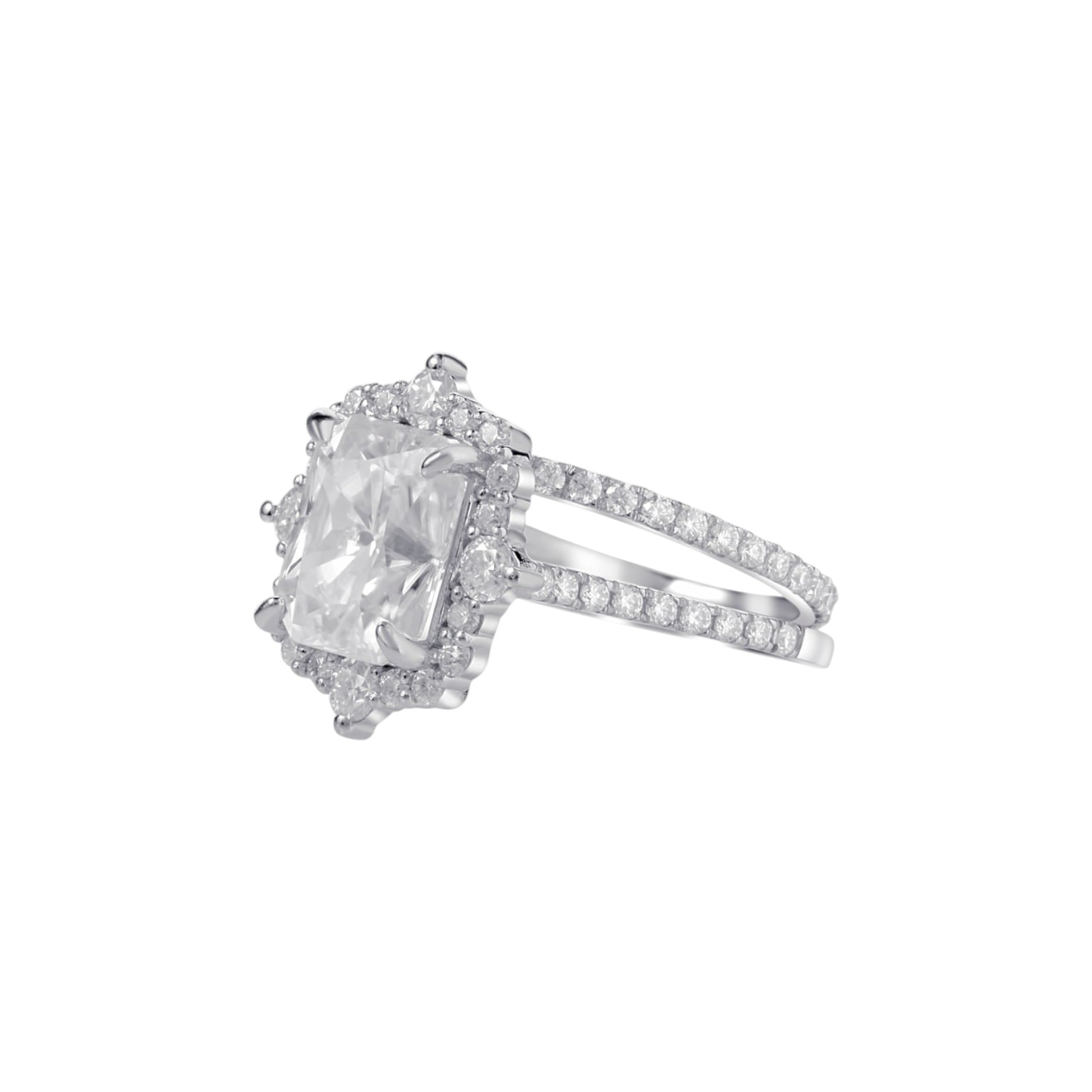 Quinn 2.0 Radiant Cut Moissanite Bride Set in 925 Sterling Silver