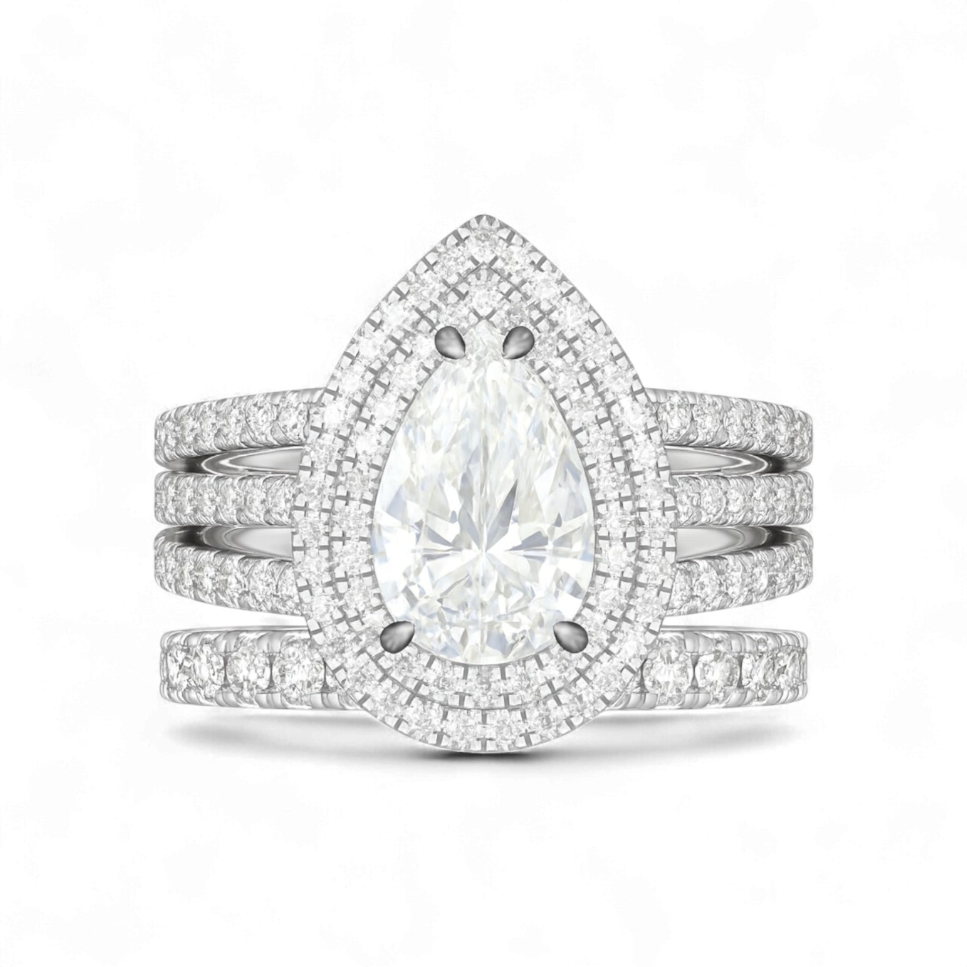 Perfect for the bride who desires refined beauty with a sustainable soul, the Lovely Pear set is more than a statement, it’s a legacy in platinum.