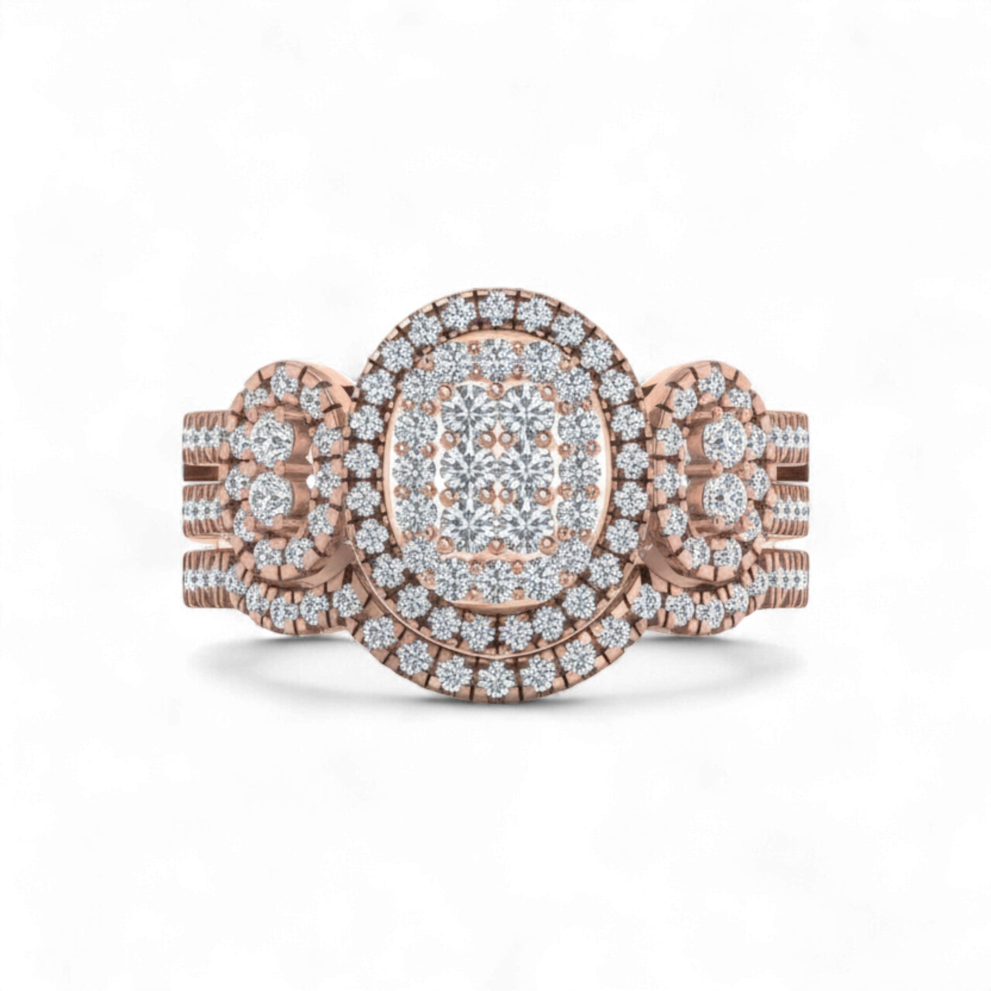 Regina Oval Cut Natural Diamond Cluster Bride Set in 18KT Gold
