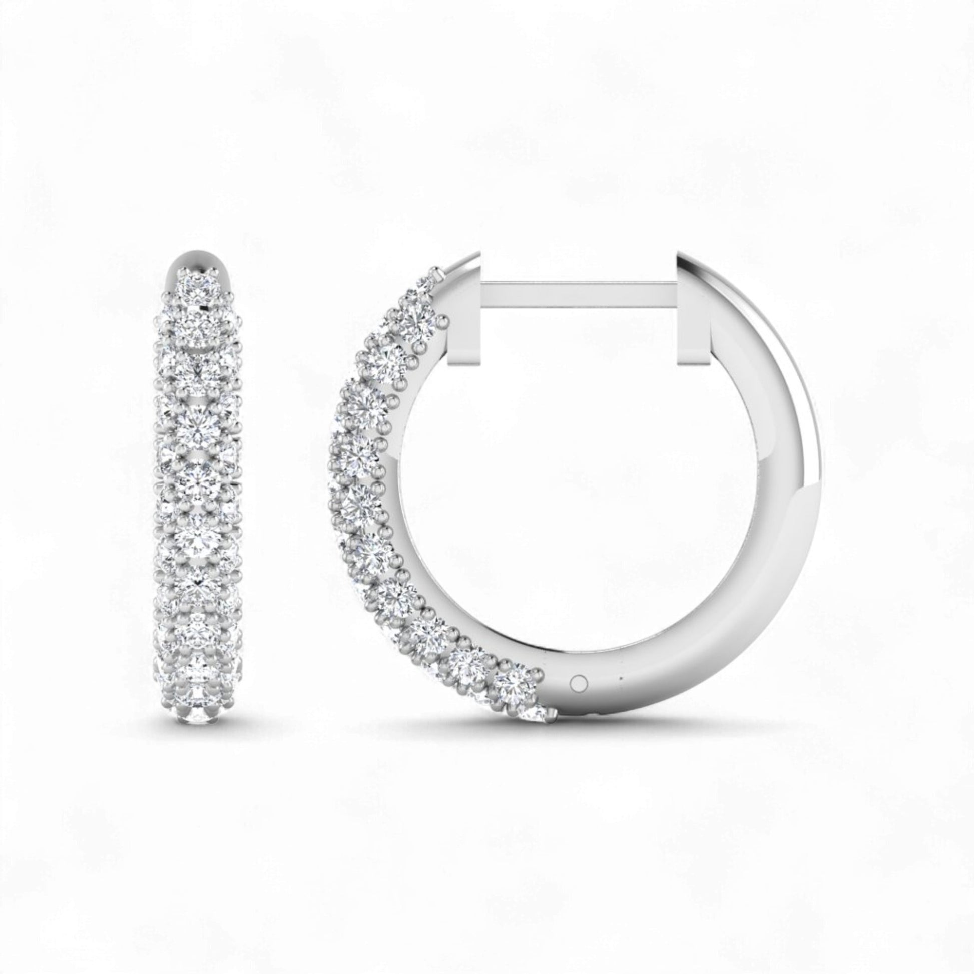 Radiating sophistication and grace, the Nadine Diamond Hoop Earrings are a true embodiment of timeless romance. Crafted in lustrous 18K gold, each hoop is adorned with two shimmering rows of brilliant-cut diamonds, creating an uninterrupted stream of light and sparkle. The sleek, refined silhouette makes them perfect for both day and evening wear, adding a touch of luxury to any occasion.