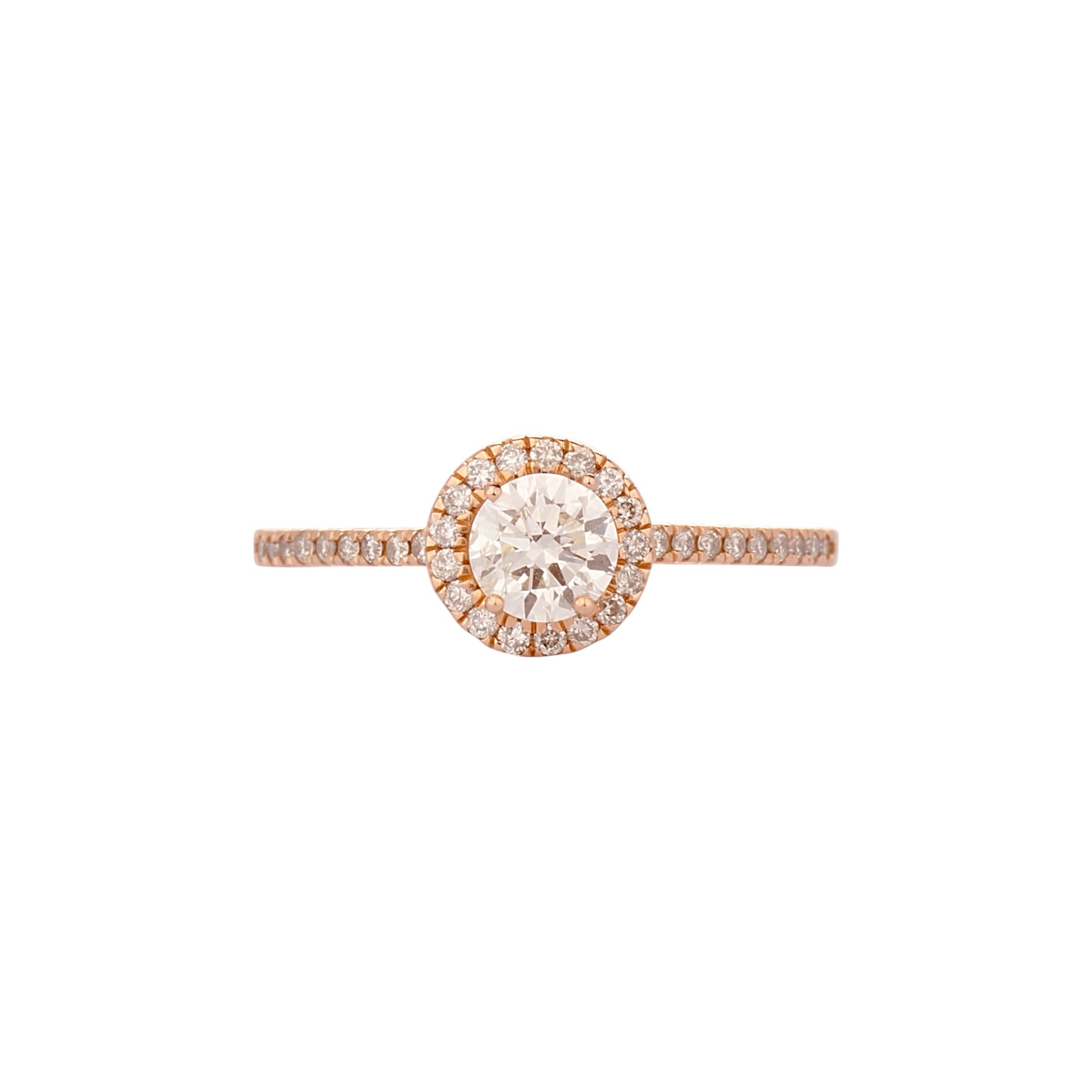 Graceful and timeless, the Thelma Round Cut Natural Diamond Engagement Ring is a radiant symbol of love’s most precious promise. Handcrafted in luminous 18 Karat gold, the design features a brilliant round-cut natural diamond, celebrated for its fire and perfection. Surrounded by a delicate halo of pavé-set diamonds and set on a slim, diamond-accented band, this ring sparkles with refined elegance and understated luxury.