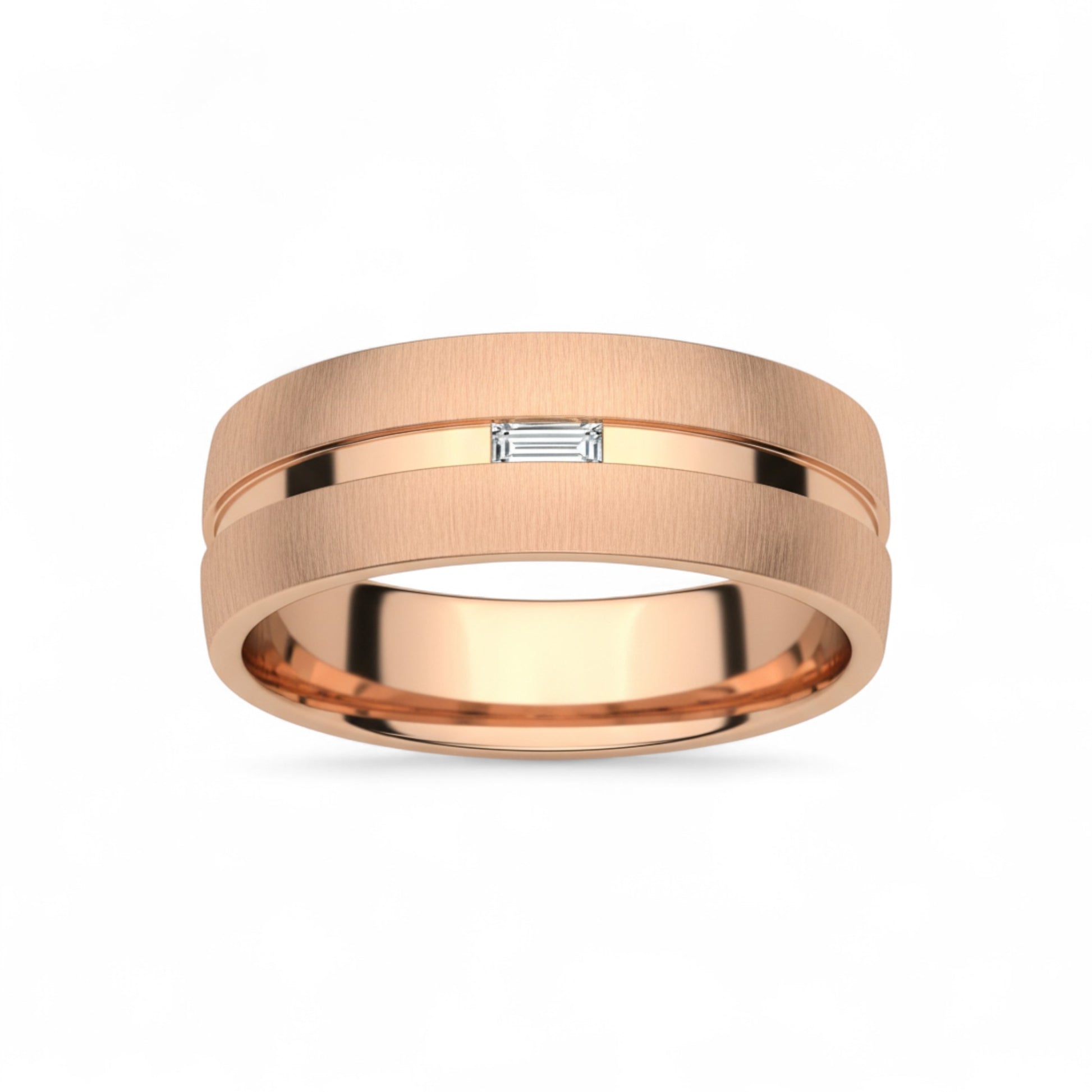 A timeless fusion of brilliance and sophistication, this exquisite band features a striking emerald cut moissanite set at the midline of a lustrous 18K gold band. Designed for those who appreciate understated luxury, the clean lines and elongated facets of the emerald cut create a graceful sparkle, making it a perfect choice for a modern engagement, anniversary statement, or refined everyday elegance. Crafted with precision, this piece radiates both durability and classic beauty, a true testament to fine craftsmanship and enduring love.