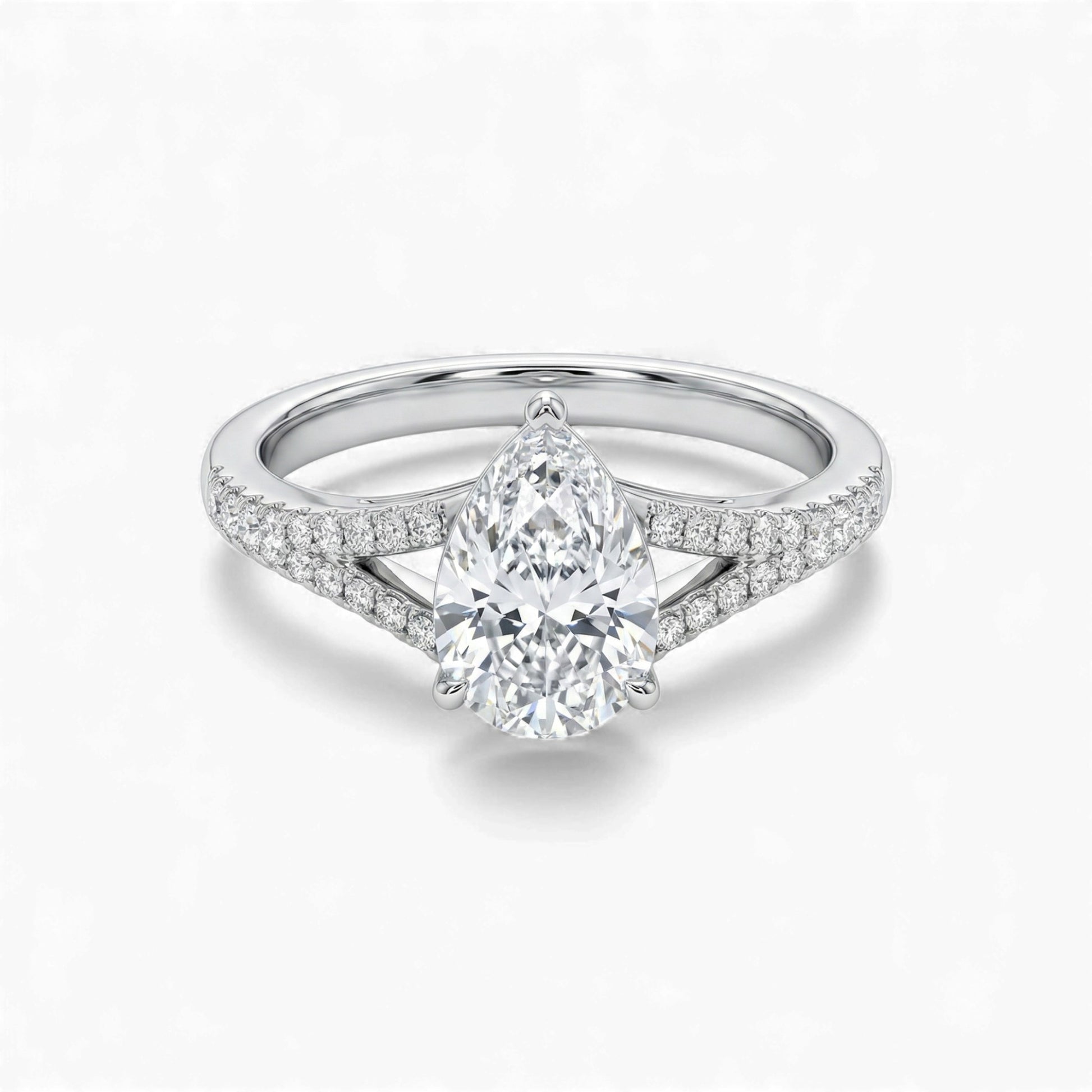 Home Collections Moissanite Split Shank Pear Cut Moissanite Engagement Ring in 925 Sterling Silver