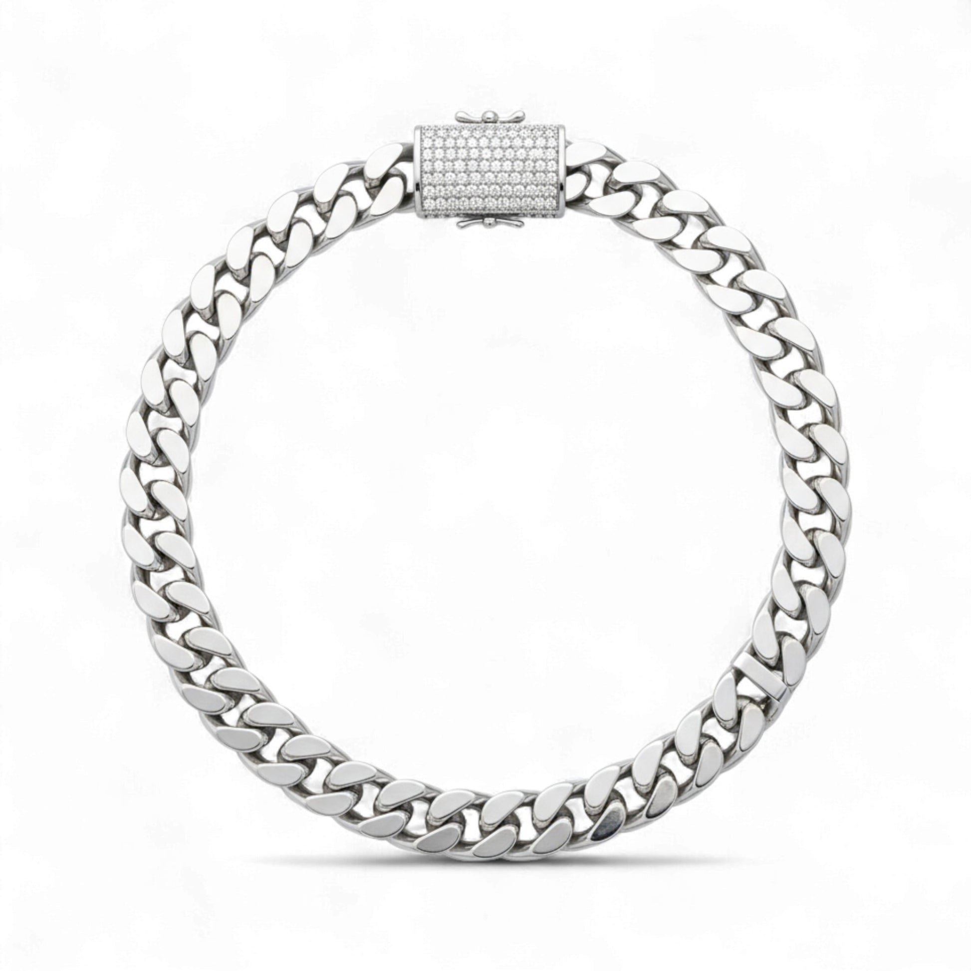 Make a statement with the Cuban Moissanite Necklace, a powerful fusion of street style and fine craftsmanship. This iconic Cuban link chain is expertly crafted from solid 925 sterling silver and hand-set with brilliant moissanite stones that radiate unmatched fire and clarity.