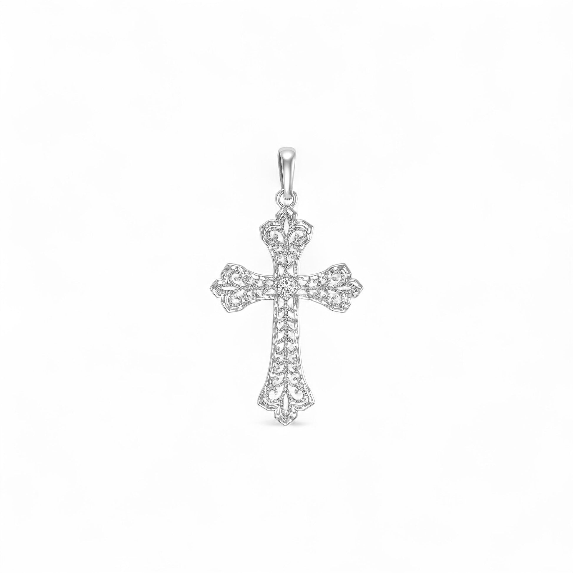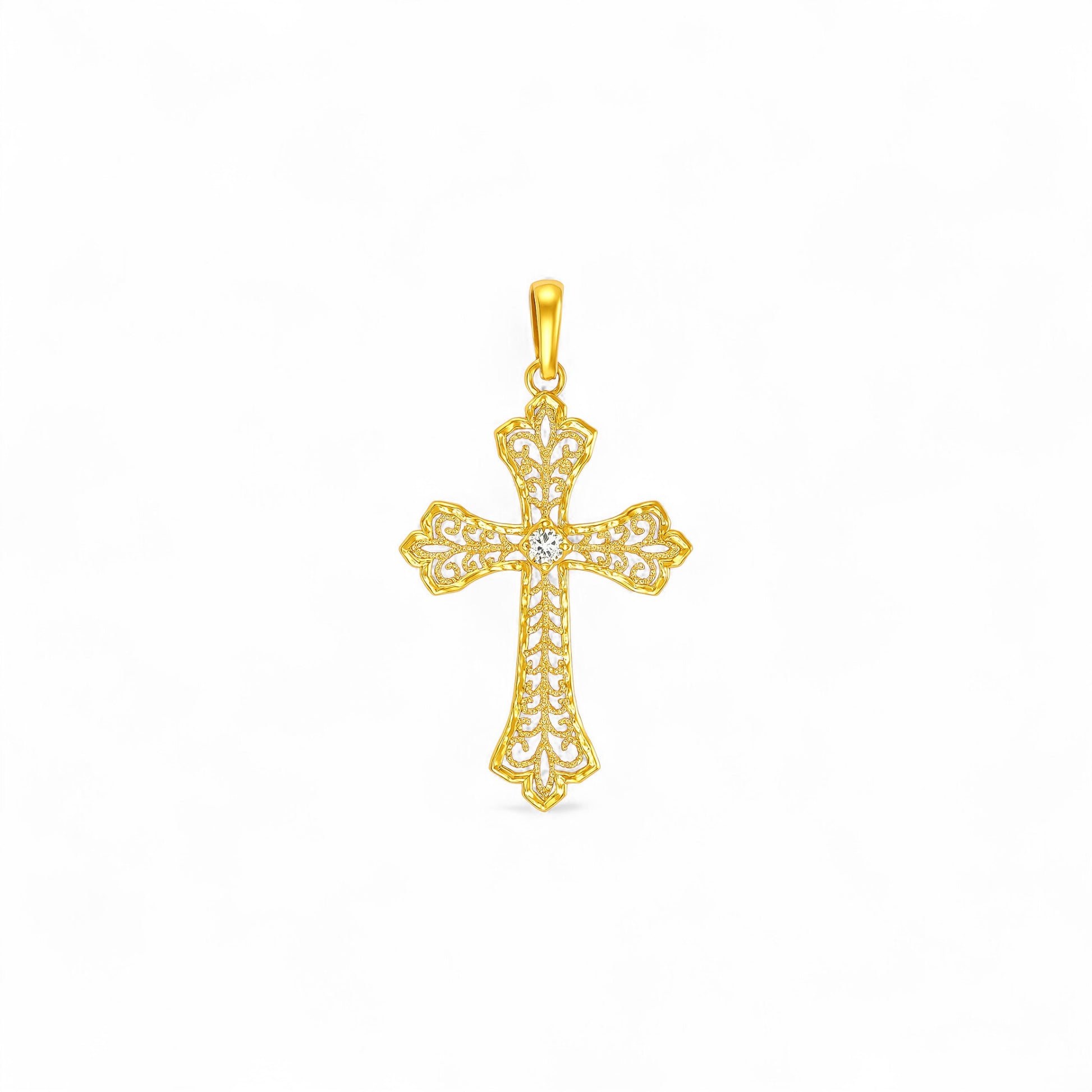 Single Stone Cross Diamond Pendant in 18kT Gold