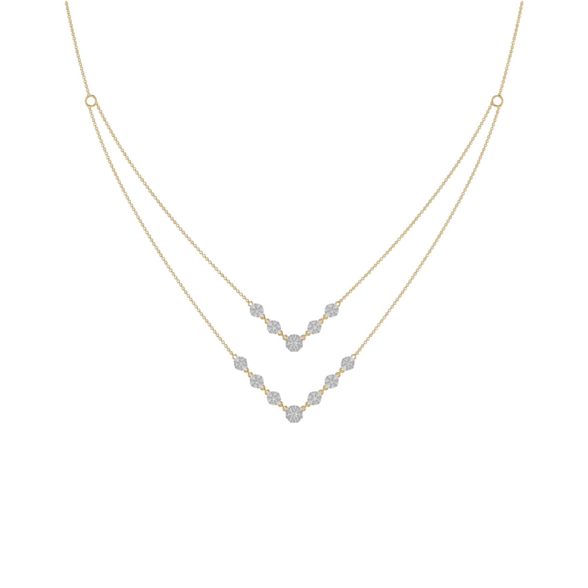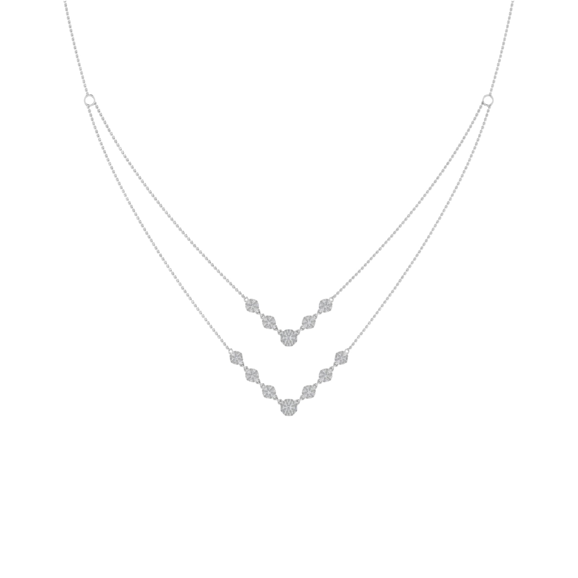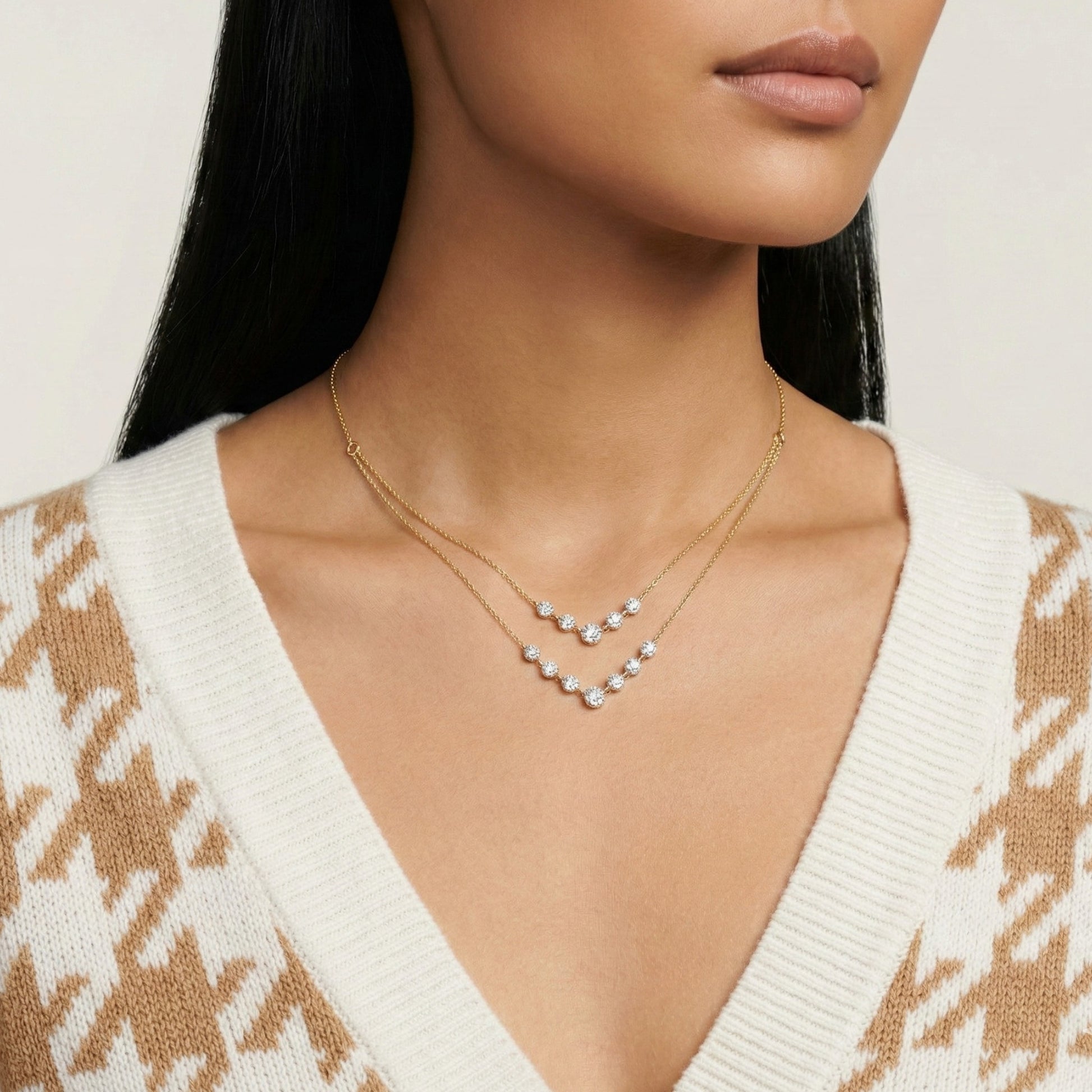 Elegant, graceful, and designed to captivate, the Double Layered Drop Natural Diamond Necklace is a stunning display of modern luxury and timeless sparkle. Featuring two delicate layers of fine chain, this necklace is adorned with brilliant natural diamonds that gently cascade in a drop formation, catching the light with every movement.