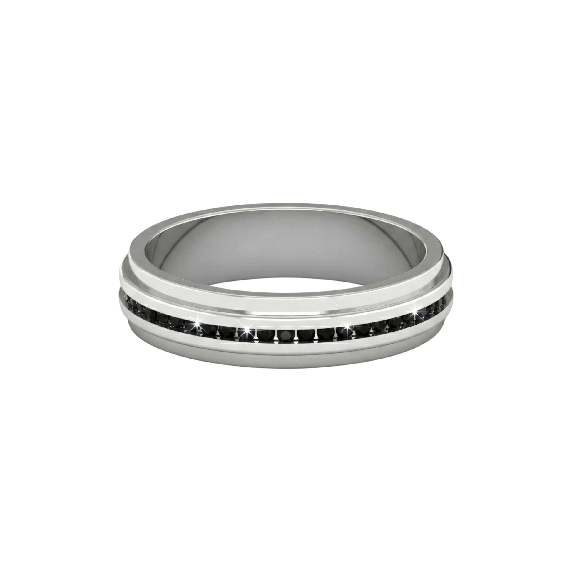 Sleek, modern, and boldly elegant, the Emma Black Moissanite Titanium Band is a refined statement of style and strength. Crafted from ultra-durable, lightweight titanium, this band features a smooth, contemporary finish and is set with a row of brilliant black Moissanite stones, known for their rich, deep sparkle and exceptional hardness.