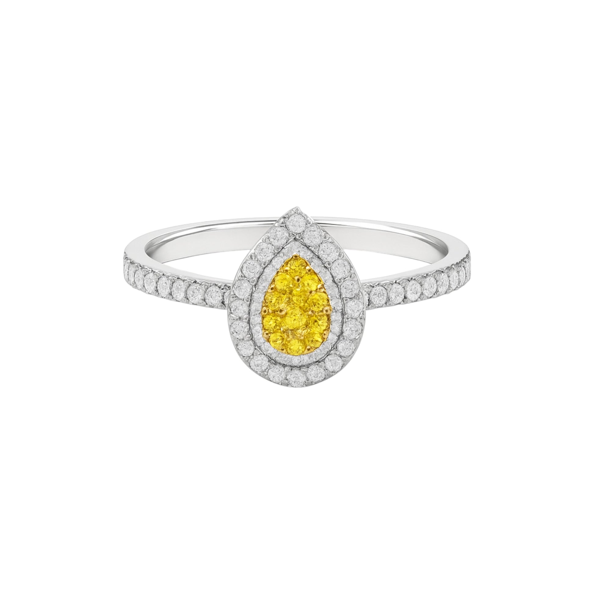 Radiating warmth, brilliance, and timeless beauty, the Sunny Pear Cut Natural Diamond Engagement Ring in 18 Karat Gold is a stunning tribute to love’s brightest moments. At its centre gleams a beautifully faceted pear-cut natural diamond, chosen for its exceptional clarity and fire, and beloved for its elegant teardrop silhouette that symbolizes both joy and emotion.