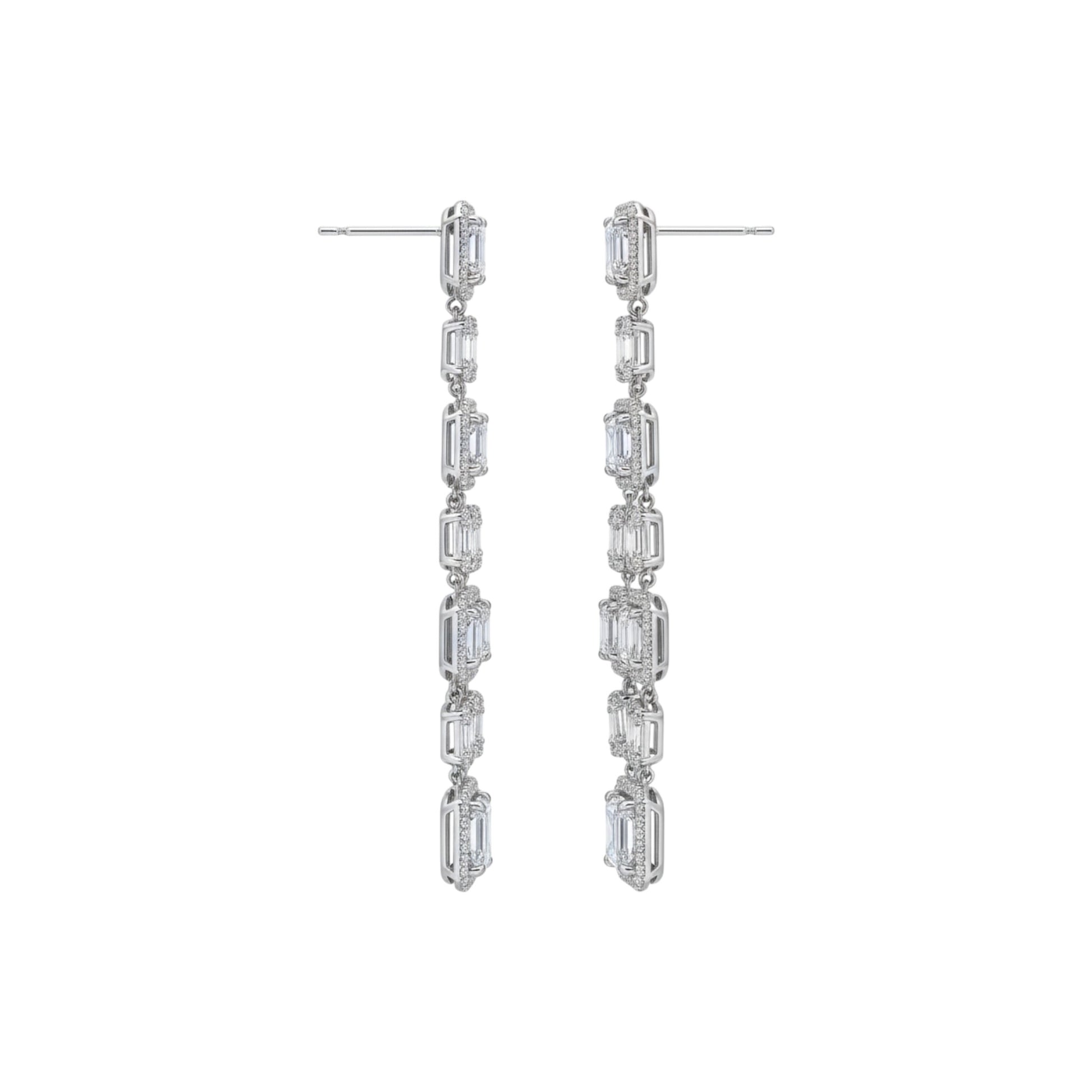 6 Round and Baguette Natural Diamond Earrings in 18KT Gold