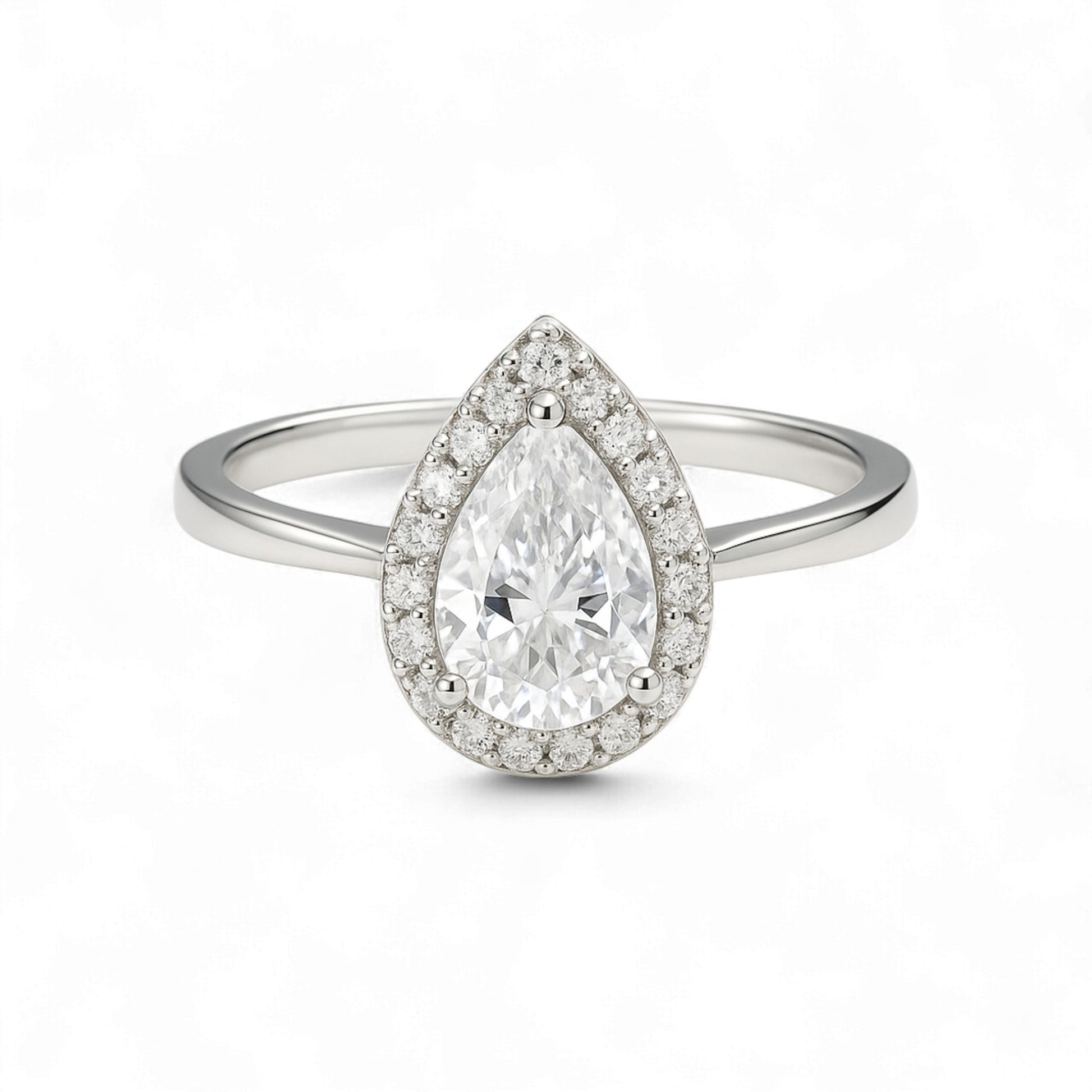 No Halo Pear Solitaire CZ Engagement ring in 925 Sterling Silver